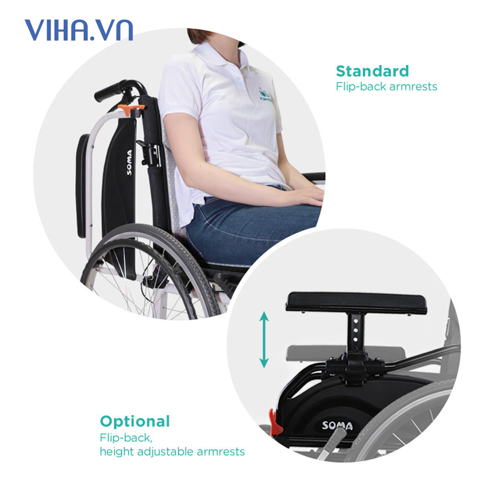 Ngoài bản tiêu chuẩn, xe còn có thế được nâng cấp với tựa tay tùy chỉnh chiều cao, và tựa chân nâng duỗi. Đáp ứng tốt các nhu cầu khác nhau của người sử dụng.