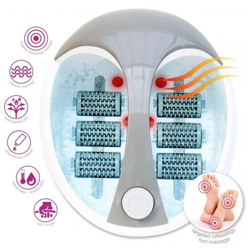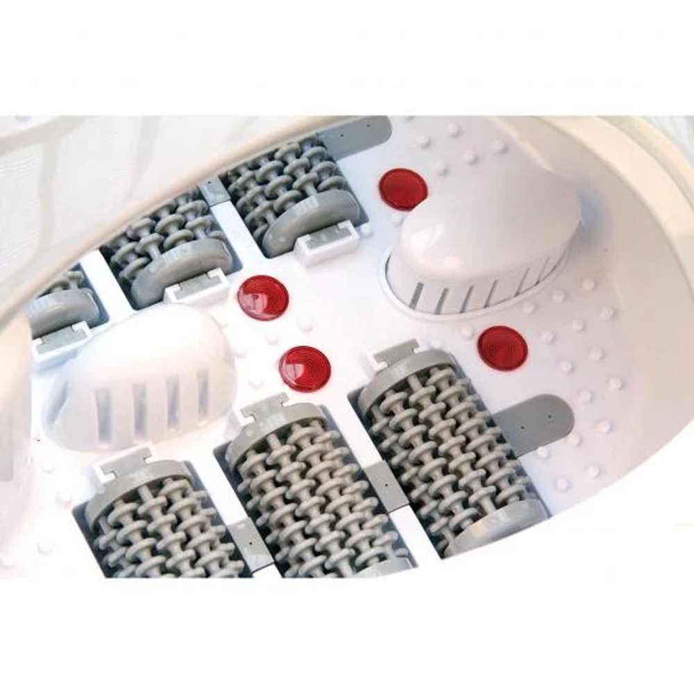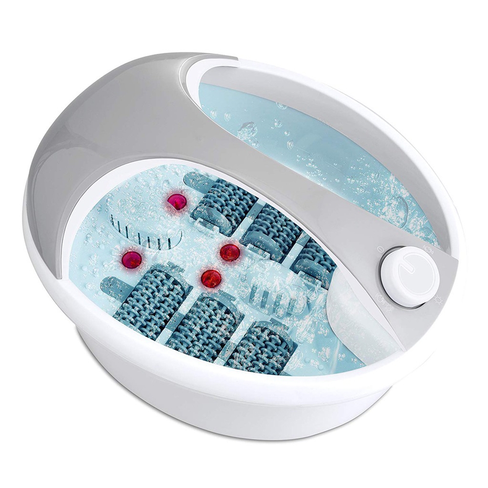 Massage sủi bọt: Dưới đáy bồn ngâm chân có thiết kế hai dãy phun nước tạo ra sóng mạnh mẽ tác động vào lòng bàn chân nhẹ nhàng, êm ái. Các tia nước sủi bọt cũng góp phần tạo nên áp lực nước để tác động tới cả lòng bàn chân và mu bàn chân. 04 đèn hồng ngoại: Đèn hồng ngoại có hiệu quả chữa bệnh rất tốt, đặc biệt tốt cho những người bị bệnh cơ xương khớp. Đèn hồng ngoại giúp cho việc lưu thông máu được nhanh hơn, bởi chân thường là nơi máu ít đi tới nhất. Mặt khác chân là trụ cột thân thể khi đứng lâu máu lại thường tụ dưới chân nhiều hơn mà không di chuyển lên trên gây ra tình trạng nhức mỏi chân. Vì vậy ngâm chân với bồn ngâm chân có đèn hồng ngoại sẽ giảm bớt tình trạng máu ít lưu thông tới chân hoặc máu tụ nhiều ở chân.