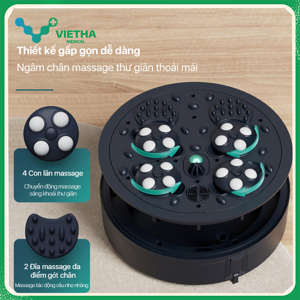 - 4 con lăn + 2 đĩa gót chân giúp massage sâu, thư giãn tối đa