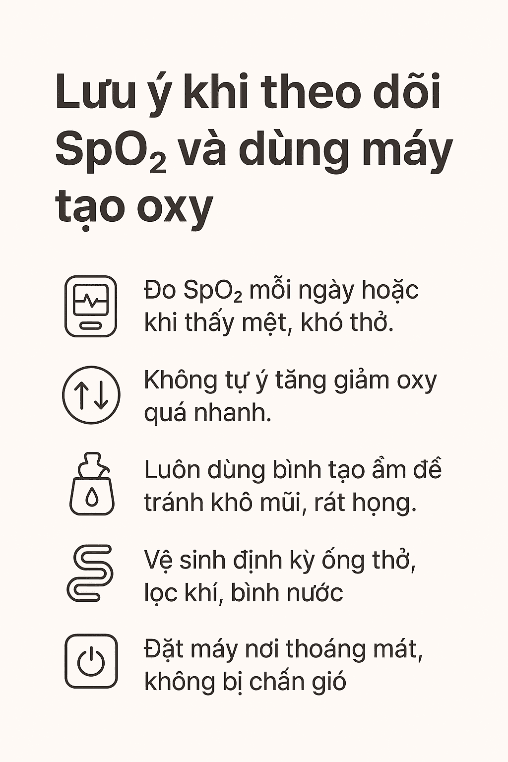 Lưu ý khi theo dõi SpO₂ và dùng máy tạo oxy