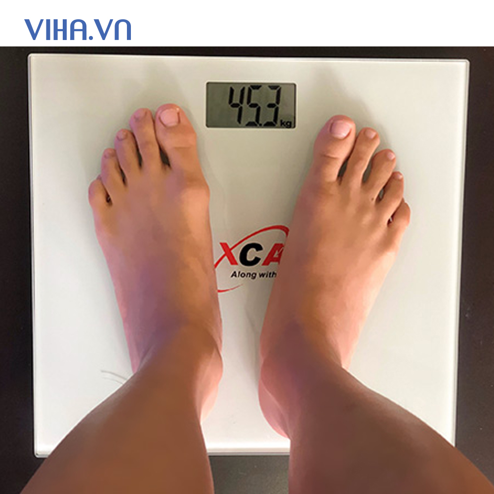 - Bước 3: Cân nặng của bạn sẽ hiển thị sau khi bạn đứng lên.Thiết bị sẽ tự động tắt sau 30s nếu bạn đo xong.