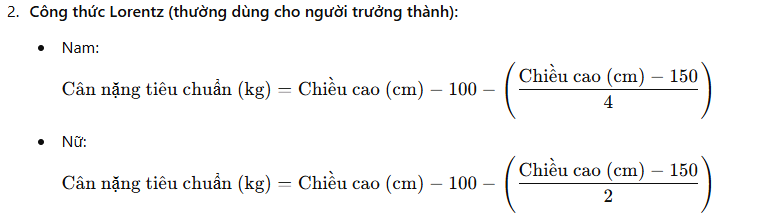 Các phương pháp xác định cân nặng tiêu chuẩn: