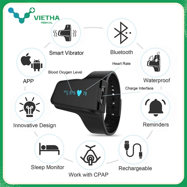 Thiết bị giúp phát hiện sự sụt giảm oxy ban đêm – dấu hiệu thường gặp ở người ngáy to, khó ngủ, thức giấc giữa đêm.