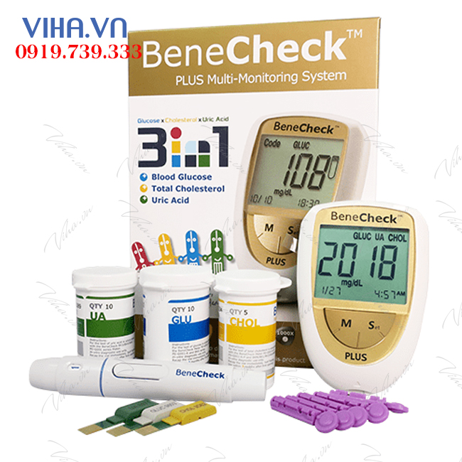 Máy đo đường huyết 3 trong 1 Benecheck Plus có thể đo lượng đường và axit uric toàn phần trong máu, đo lượng mỡ trong máu (cholesterol), với 3 loại que thử benechek khác nhau ( que thử glucozo , cholesterol , acid udric ) dựa trên công nghệ cảm biến sinh học điện hóa tiên tiến và duy nhất trên thế giới. Benecheck Plus cho kết quả chính xác trong vài giây, kết quả hiển thị rõ trên màn hình LCD giúp người dùng nhìn dễ dàng.