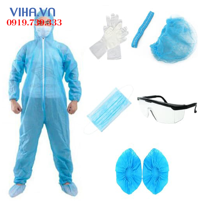 Quần áo phòng dịch dùng một lần được sử dụng và kết hợp với các loại sản phẩm đội đầu như: nón bảo hộ che mặt,khẩu trang y tế, bọc giày phòng sạch ,mặt nạ phòng độc, ủng bảo hộ, giày bảo hộ, găng tay tiệt trùng, kính bảo hộ, để bảo vệ cơ thể con người toàn diện khi tiếp xúc với các môi trường dịch bệnh,hóa chất…