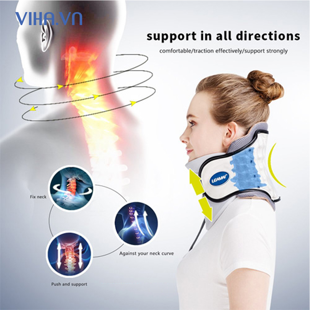 - Lực kéo 3 chiều giúp kéo giãn cơ cổ, giải phóng chèn ép, kéo giãn đốt sống cổ một cách hiệu quả và mạnh mẽ.