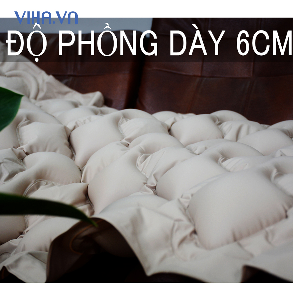 - Bật nguồn máy bơm. Máy sẽ từ từ bơm hơi vào trong đệm. Khoảng 30 phút đệm sẽ đầy hơi. Luôn giữ máy bơm hoạt động khi sử dụng, có thể điều chỉnh mức độ bơm hơi.