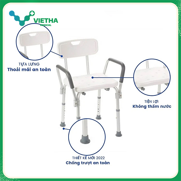 Có tay vịn hai bên: Giúp người già, người bệnh dễ dàng đứng lên, ngồi xuống, tăng sự tự tin và an toàn.
