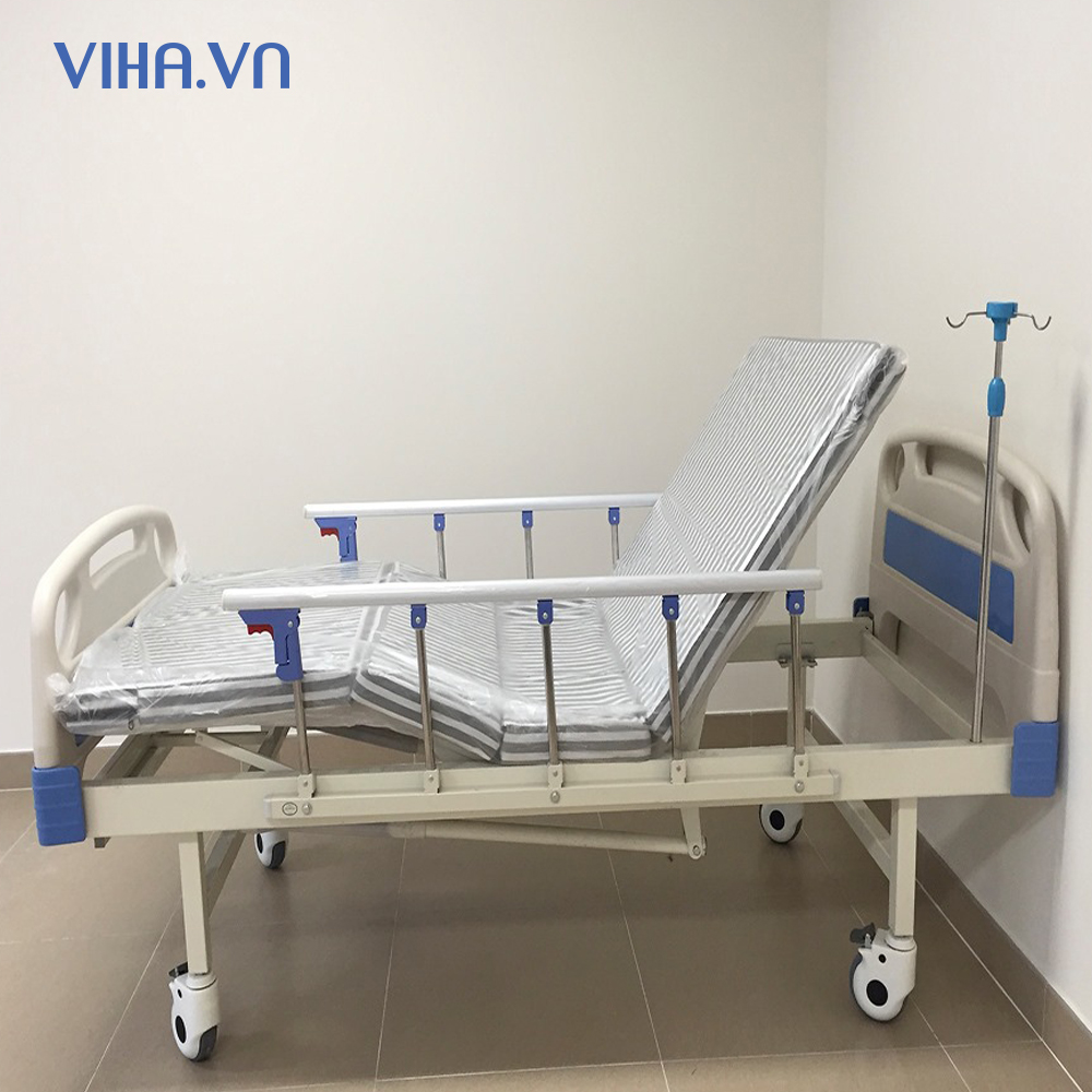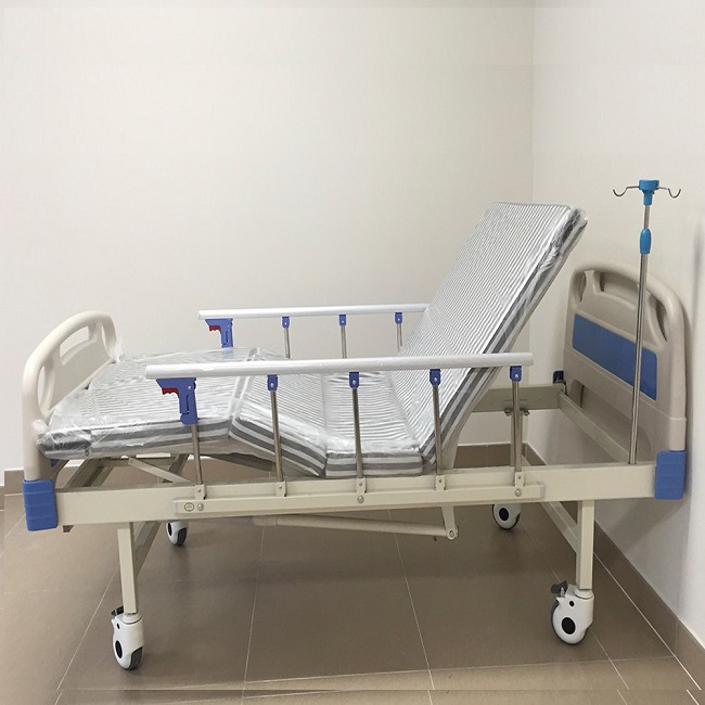Giường bệnh viện có 2 tay quay ở phía cuối chân giường, có 2 chức năng gồm: nâng cao đầu và nâng cao chân, giành cho những bệnh nhân có yêu cầu nằm ở tư thế cao.