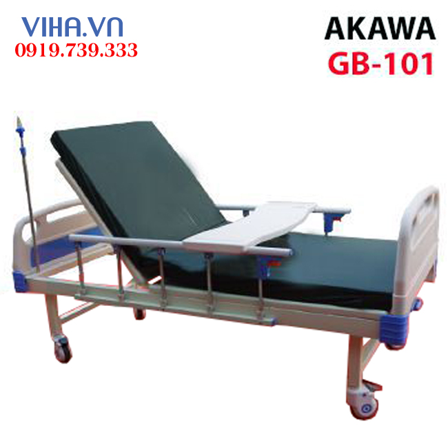 Giường bệnh nhân 1 tay quay akawa GB-101 là giường có 1 tay quay nâng đầu, kèm bàn ăn.