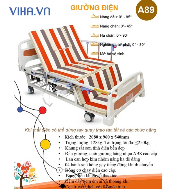 Giường điện AKIKO A89 là giường y tế có bô đa năng dành cho người ốm, người bị đột quỵ, người bị liệt, người tàn tật, những người không thể tự ngồi dậy và không tự trở mình được