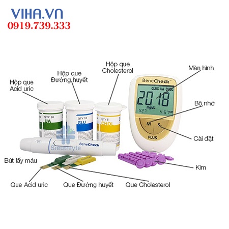 - Máy đo đường huyết 3 trong 1: Sản phẩm này có thể đo được cả đường huyết, acid uric và mỡ máu