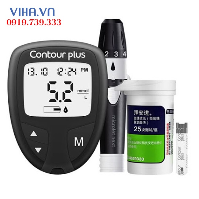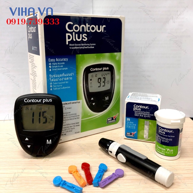 Trọn bộ sản phẩm máy đo đường huyết Contour Plus