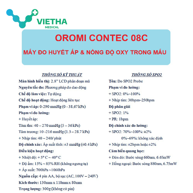 Thông số kỹ thuật máy đo huyết áp Oromi Contec 08C