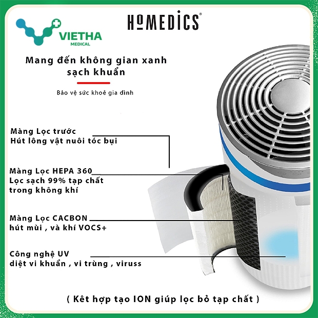 - Lọc sạch bụi mịn PM2.5, phấn hoa, lông thú cưng