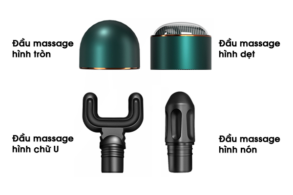 - 4 đầu massage với cấu tạo và chức năng khác nhau, để sử dụng linh hoạt cho các bộ phận trên cơ thể