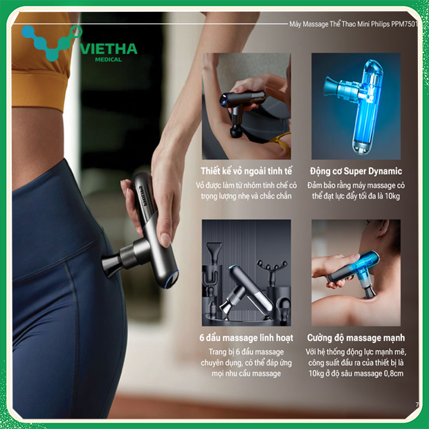 6 đầu massage chuyên dụng được thiết kế phù hợp cho người chơi thể thao
