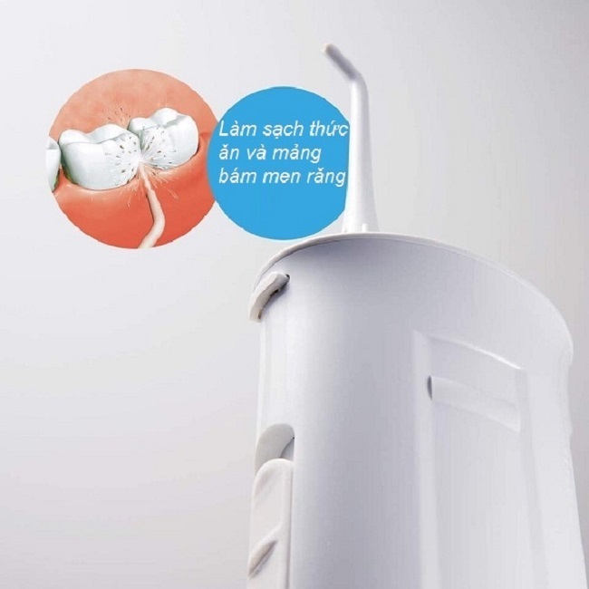 Áp lực nước mạnh, sẽ giúp đẩy sạch các mảm bám, thức ăn thừa bám trong kẽ răng