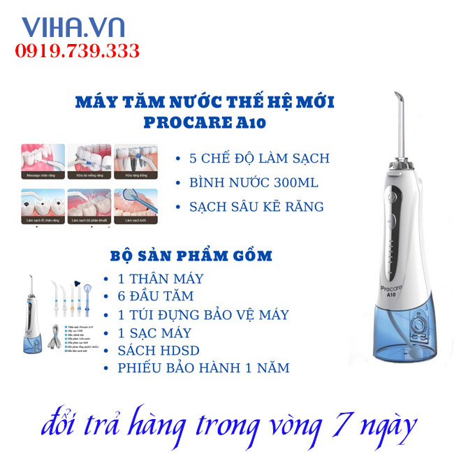 Máy tăm nước du lịch cầm tay Procare A10 hàng chính hãng