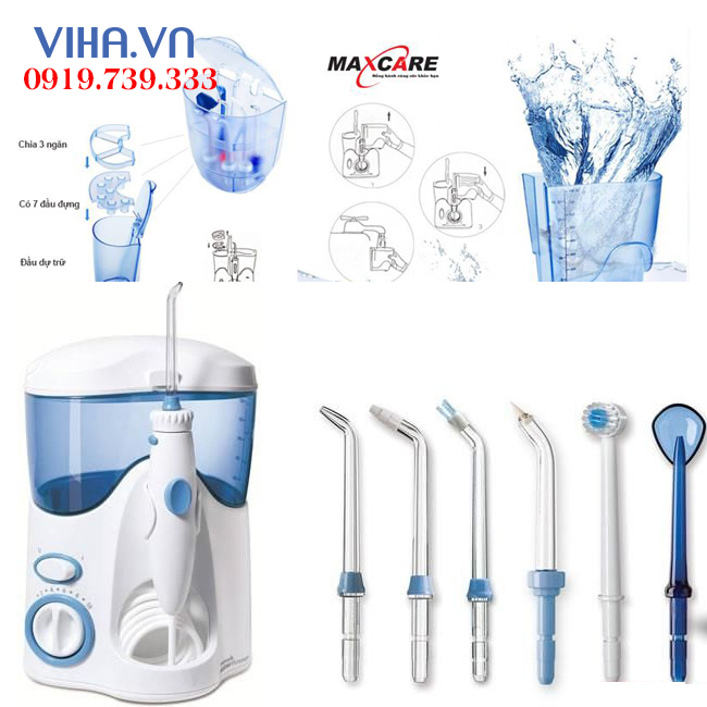 - Máy tăm nước gia đình maxcare max 456 plus , với công nghệ sóng siêu âm hiện đai không tiếng ồn, cùng áp lực nước mạnh giúp làm sạch mọi mảng bám, thức ăn thừa tận chân răng.