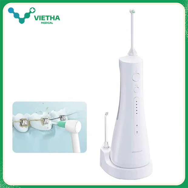 Một máy tăm nước giúp loại bỏ các mảnh vụn thức ăn nhờ dòng nước mạnh, cùng với đầu phun kết hợp bàn chải kẽ giúp loại bỏ mảng bám xung quanh các dụng cụ chỉnh nha. Việc chăm sóc răng miệng trong quá trình điều trị chỉnh nha vốn rất phiền phức và khó khăn nhưng nay có thể được giải quyết hoàn toàn với một thiết bị duy nhất. Nhanh chóng, dễ dàng và hợp vệ sinh.