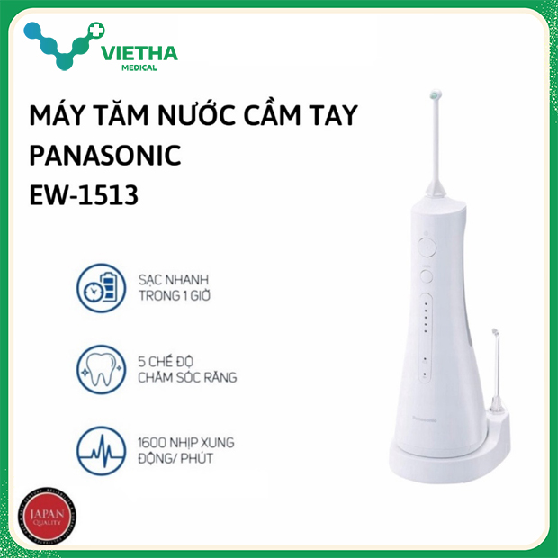 - Máy tăm nước cầm tay Panasonic EW1513 nhỏ gọn có thể mang đi du lịch rất tiện lợi.