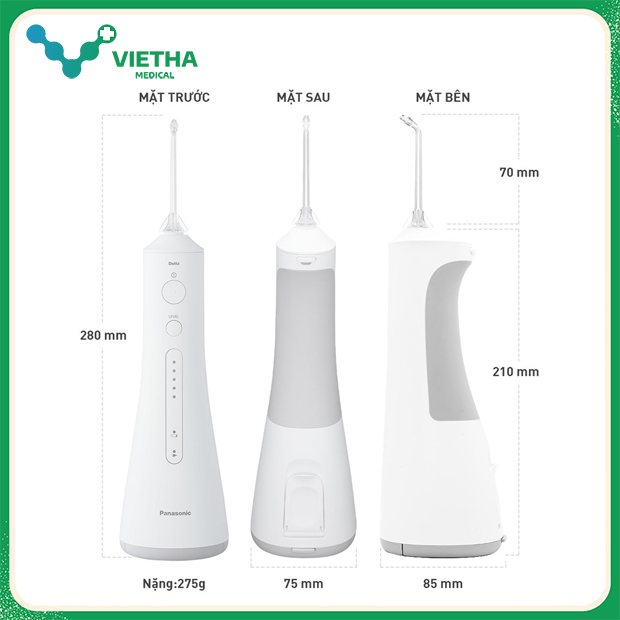 - Phụ kiện: Vòi siêu âm (1 cái); Vòi chỉnh nha (1 cái); Đế sạc (1 cái); Vít để treo tường (2 cái)