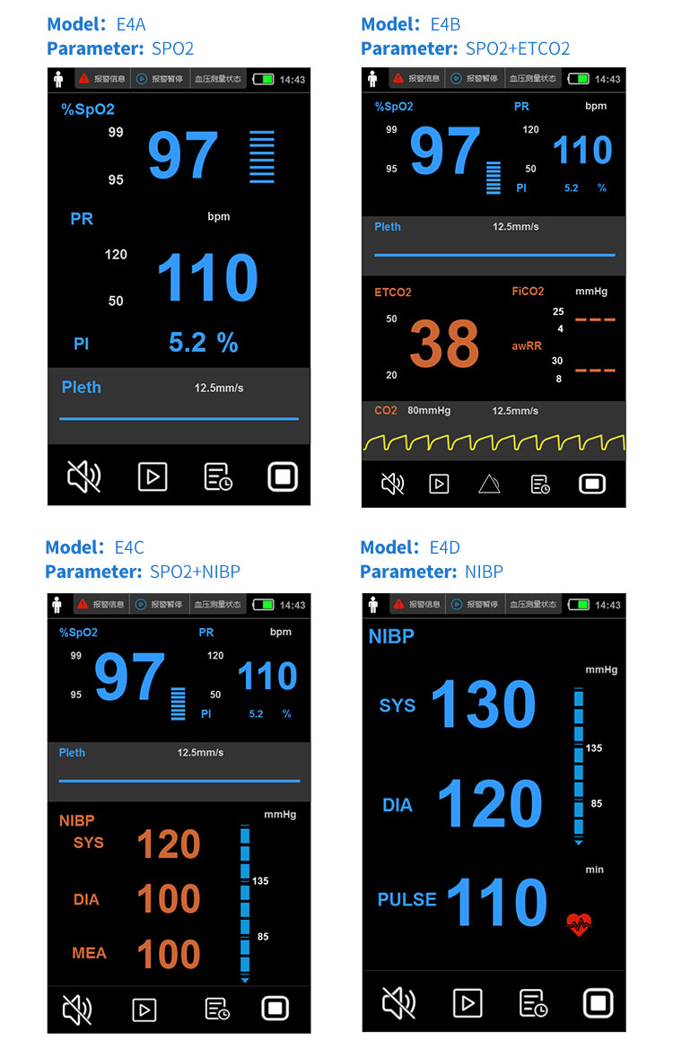Máy theo dõi bệnh nhân đa thông số Yonker PV-H820E được trang bị màn hình TFT màu 4 inch, theo dõi chính xác các chỉ số quan trọng như SpO₂, huyết áp không xâm lấn (NIBP), ETCO₂ (tùy cấu hình), pin lithium cho phép theo dõi liên tục hơn 5 giờ, hỗ trợ sạc linh hoạt qua adapter, pin dự phòng hoặc ô tô, cùng khả năng lưu trữ 500 nhóm dữ liệu và xem biểu đồ xu hướng, thiết kế nhỏ gọn phù hợp cả cơ sở y tế và chăm sóc tại nhà – PV-H820E: nhỏ gọn nhưng mạnh mẽ, theo dõi chính xác, an tâm từng nhịp sống.