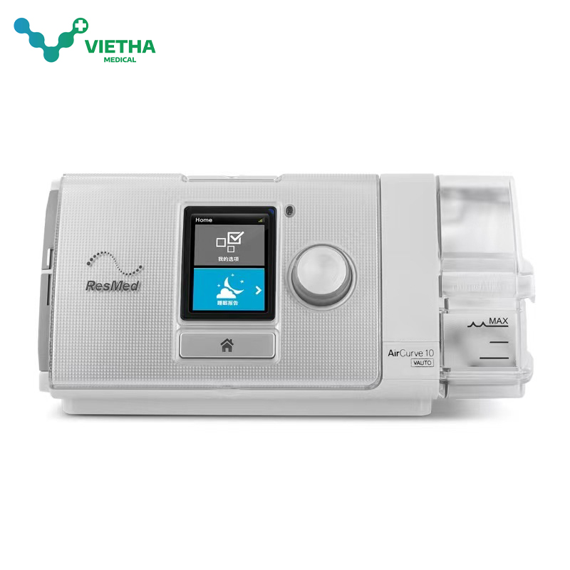 - Máy trợ thở ResMed AirCurve 10 VAuto cung cấp liệu pháp BiPAP tự động dùng để điều trị chứng ngưng thở khi ngủ và Bệnh phổi tắc nghẽn mạn tính COPD