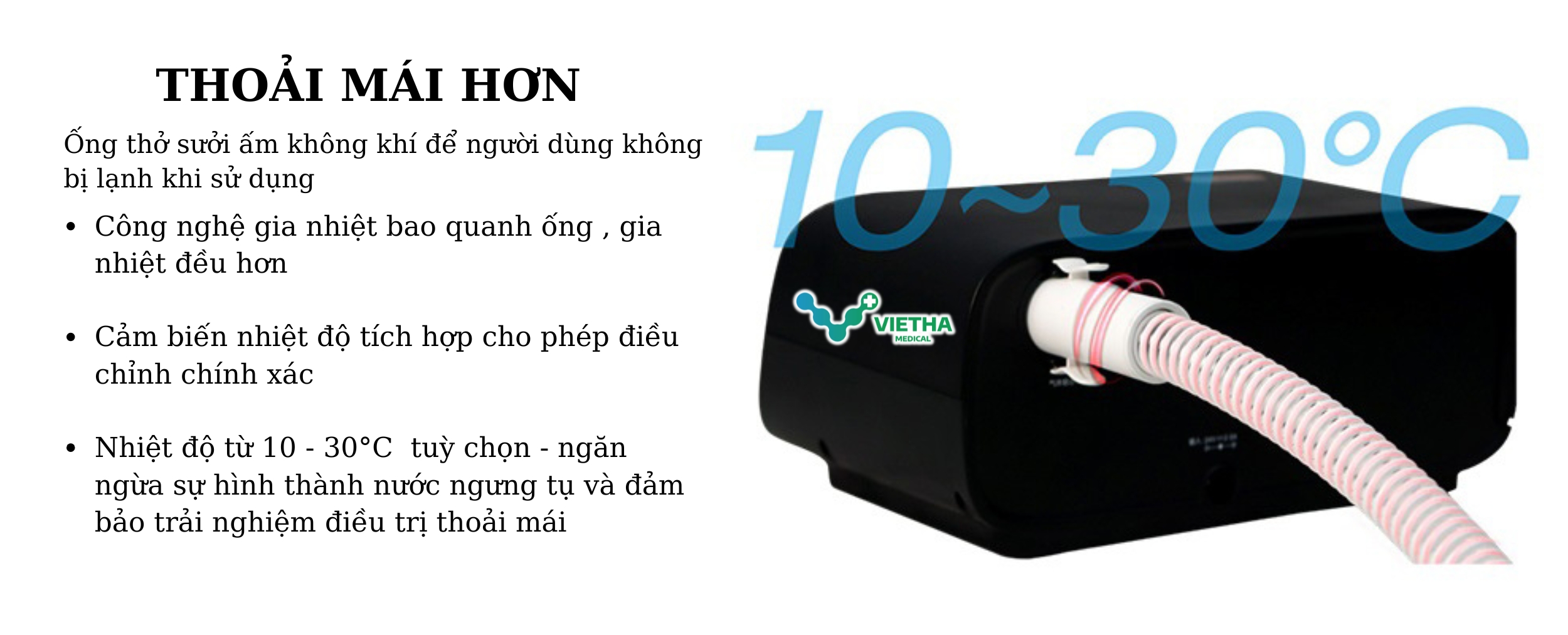 - Tính năng thoải mái của máy trợ thở Ventmed DF-30V được thể hiện qua nhiều yếu tố. Đầu tiên chính là việc sử dụng máy rất đơn giản, thoải mái và tiện lợi. Với chế độ SmartStart người dùng chỉ cần đeo mặt nạ, hít thở là máy tự hoạt động, tháo mặt nạ thì máy cũng ngừng hoạt động. Rất nhiều tính năng được máy cài đặt sẵn và tự động điều chỉnh cho phù hợp với thể trạng của mỗi người.