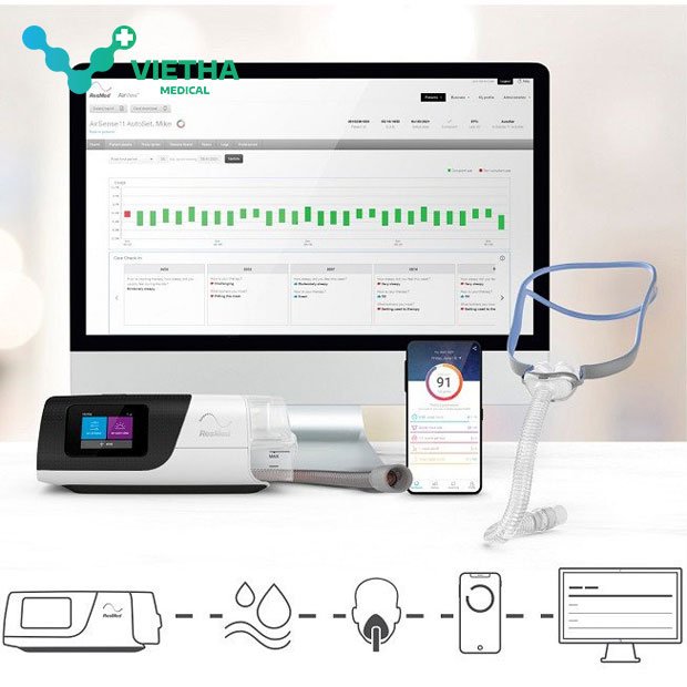 Ở thị trường Việt Nam hiện tại, Resmed là thương hiệu máy thở cá nhân duy nhất có khả năng theo dõi các thông số hiệu quả thở máy qua hệ thống đám mây Airview. Mọi dữ liệu khi người dùng sử dụng máy thở sẽ tự động được gửi lên hệ thống đám mây, các bác sĩ có thể theo dõi và thông báo cho người sử dụng ngay cả khi hai bên ở khoảng cách rất xa, không cần gặp và thăm khám trực tiếp. Ngoài ra, máy thở Resmed Airsense 11 Autoset cũng có thẻ nhớ dung lượng cao lưu trữ dữ liệu như những máy thở thông thường.