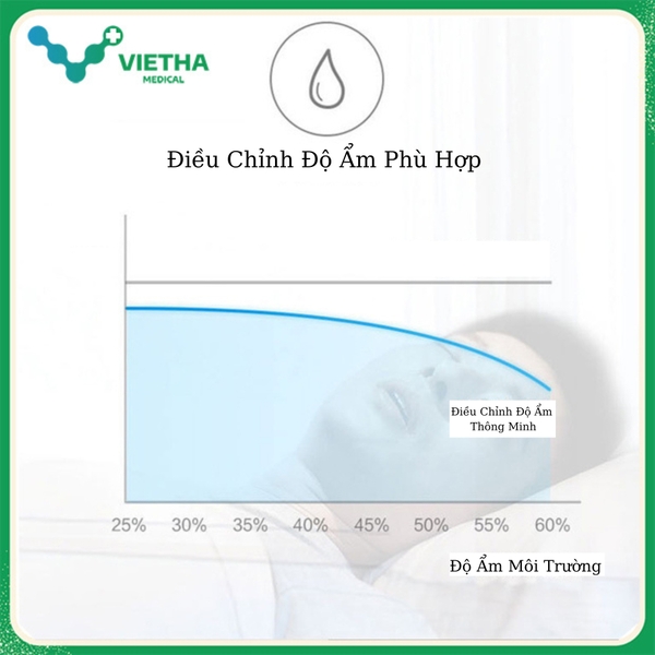 - Tự động điều chỉnh độ ẩm không khí theo điều kiện môi trường, giúp người dùng cảm thấy thoải mái hơn khi thở.