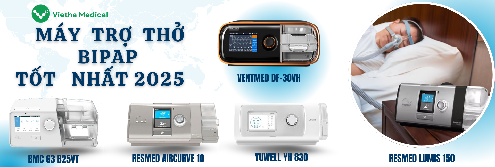 Ngoài ra, việc sử dụng máy trợ thở BiPAP còn giúp giảm tình trạng mệt mỏi ở cơ hô hấp, hạn chế gắng sức khi thở, từ đó nâng cao chất lượng sống và khả năng phục hồi cho người bệnh. Dưới đây Vietha Medical xin giới thiệu 5 Mẫu máy trợ thở BiPAP tốt nhất hiện nay.