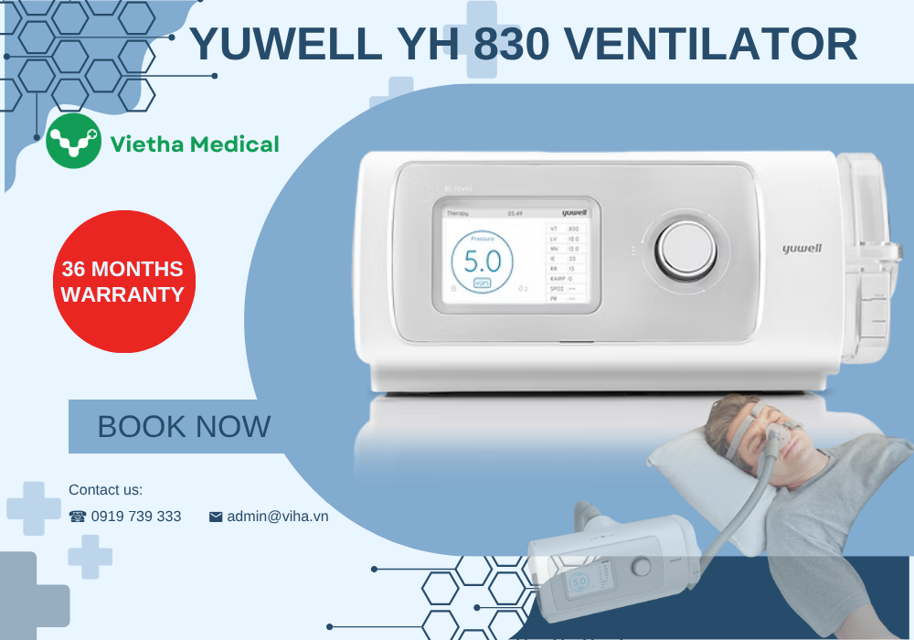 Máy thở Yuwell YH-830 là dòng máy thở hiện đại nhất của hãng Yuwell chuyên dùng cho bệnh nhân COPD máy được trang bị động cơ bền bỉ kèm thuật toán hiện đại được nhiều bệnh viện lớn tin dùng