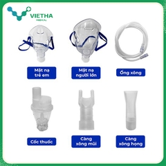 ✅ Phụ kiện đầy đủ: Gồm mặt nạ người lớn, mặt nạ trẻ em, càng xông họng, càng xông mũi, dây xông và cốc xông.