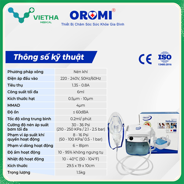 ✅ Công nghệ nén khí hiện đại từ Nhật Bản: Giúp tạo ra lớp sương mịn, đưa thuốc thẩm thấu sâu vào đường hô hấp trên và dưới.
