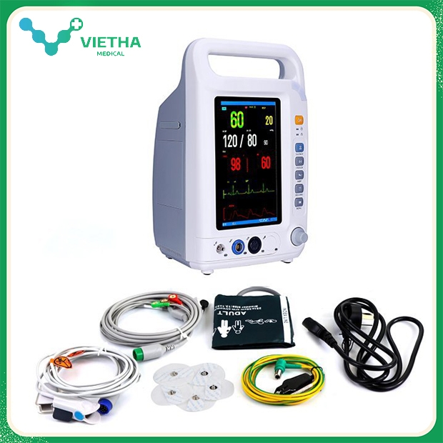 ✅ Tích hợp đủ các thông số thiết yếu: ECG, SpO₂, NIBP, RESP, Temp.
