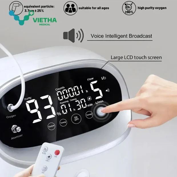- Nồng độ oxy tinh khiết 90–96% ổn định.