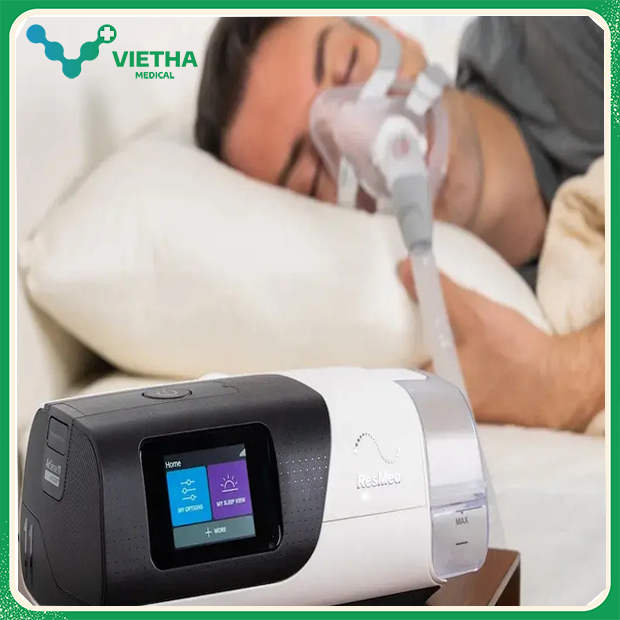- Máy trợ thở CPAP: là thiết bị cung cấp áp lực khí liên tục để giữ cho đường thở luôn mở trong khi ngủ. Đây là phương pháp điều trị hiệu quả nhất cho hội chứng ngưng thở khi ngủ do tắc nghẽn (OSA - Obstructive Sleep Apnea) và ngủ ngáy nặng, giúp ngăn chặn tình trạng ngưng thở và cải thiện chất lượng giấc ngủ.