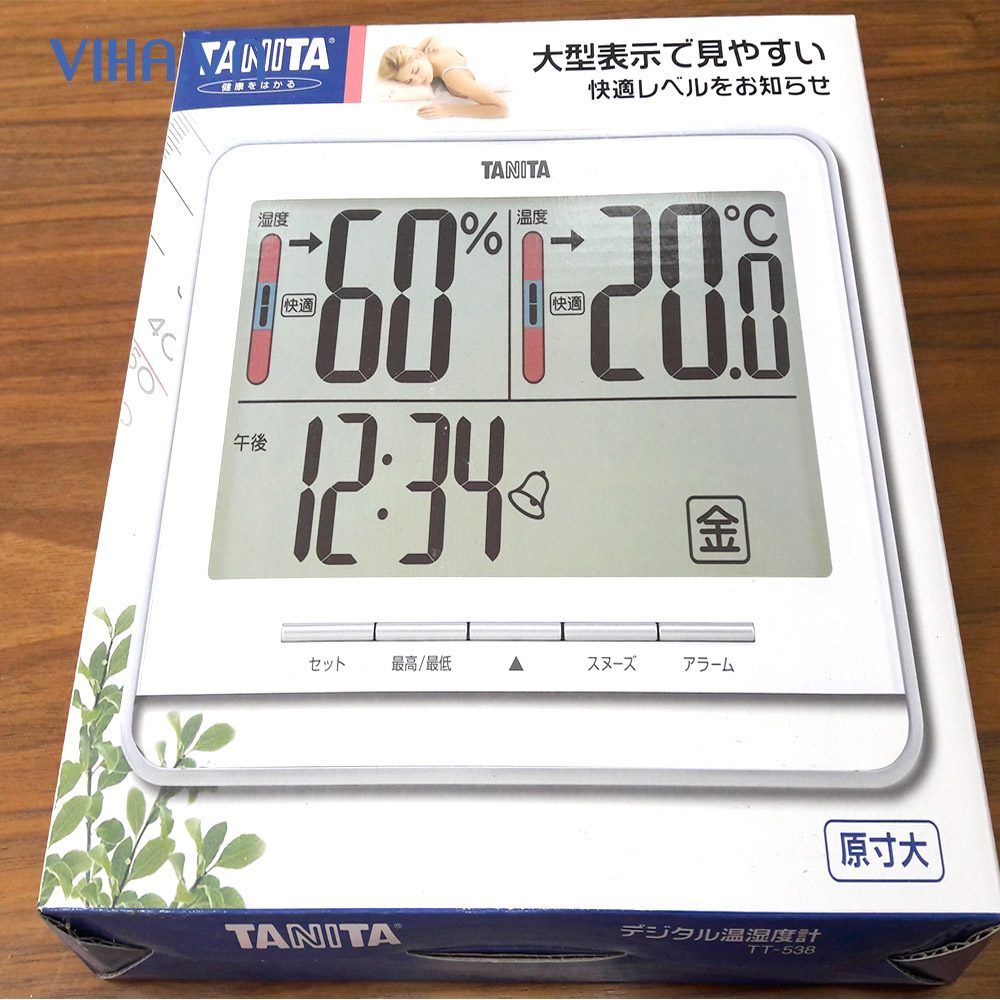 Máy đo độ ẩm có thiết kế nhỏ gọn với kích thước chỉ 9,9cm x 8,1cm x 1,1cm, trọng lượng chỉ vài trăm gam. Sản phẩm có màu trắng trang nhã, có thể để bàn hoặc treo tường sử dụng giúp tiết kiệm diện tích. Màn hình LCD kích thước lớn nên quan sát kết quả đo dễ dàng.