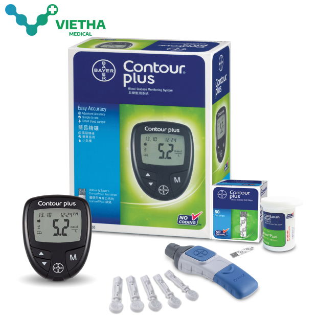 - Máy đo đường huyết Contour Plus đo lượng đường glucose trong máu toàn phần.