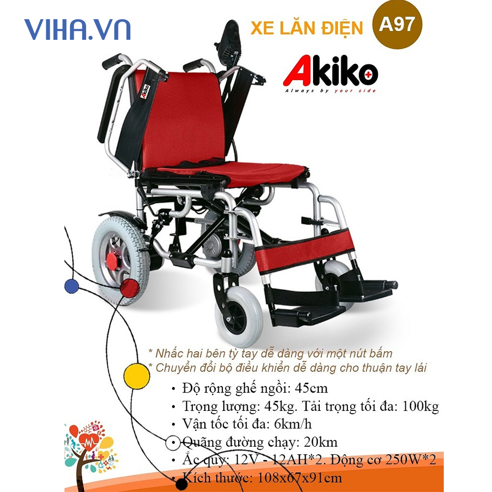 Xe lăn điện cao cấp Akiko A97 được sản xuất trên dây chuyền công nghệ hiện đại đặc biệt dành cho người già, người khuyết tật sự tiện lợi, chủ động trong hành trình di chuyển của mình...