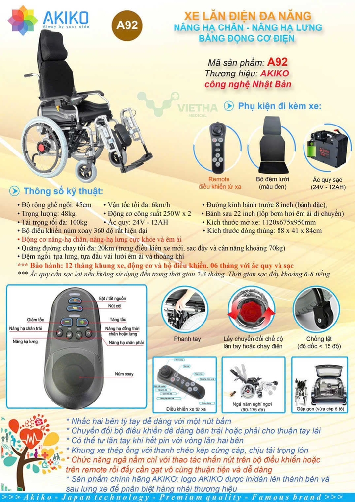 Thông Số Kỹ Thuật Xe Lăn Điện Akiko A92