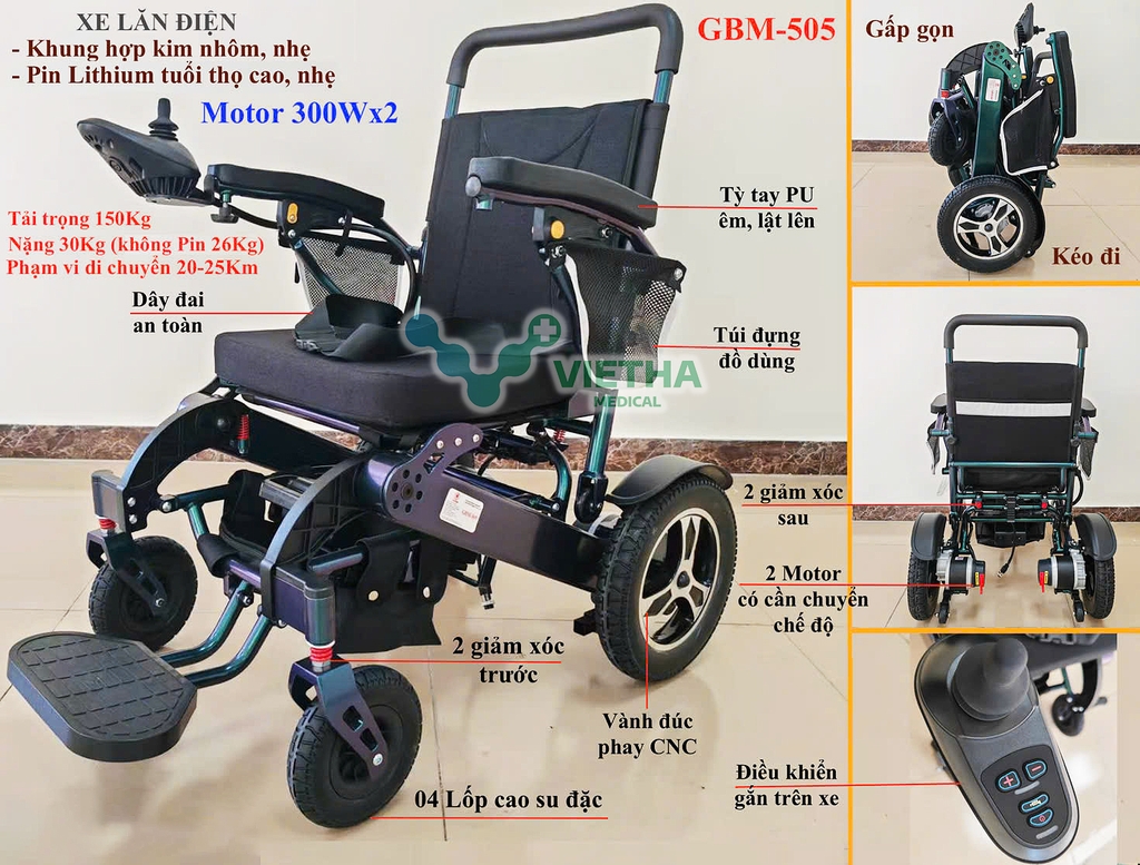 XE LĂN ĐIỀU KHIỂN ĐIỆN KHUNG NHÔM GBM-505 – PHIÊN BẢN CAO CẤP GẤP GỌN SỬ DỤNG PIN LITHIUM