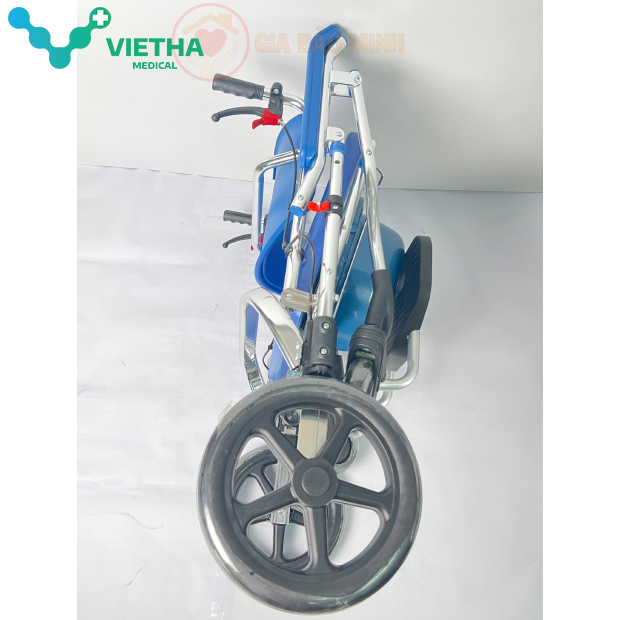 - Đây là một chiếc xe lăn kiêm ghế bô, xe tắm, xe ngồi sinh hoạt hàng ngày cao cấp có tính năng gấp gọn và kéo đi thuận tiện. Khung được làm bằng hợp kim nhôm siêu nhẹ, chắc chắn, sáng bóng và tính mỹ thuật cao, không bị han gỉ.
