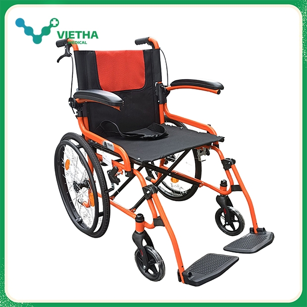 Đặc biệt dòng xe lăn X61 này đó là phần khung thép sơn tĩnh điện màu vàng cam rất bắt mắt, khung thép chắc chắn chịu được tải trọng lớn, Phần vải xe được làm từ chất liệu vải thoáng mát, phân tay lan can có thể gạt ra sau để cho người già dễ bước ra vào. Xe có thiết kế thắng tay cho người ngồi và thắng tay phía sau cho người đẩy giúp an toàn hơn trong quá trình sử dụng xe.