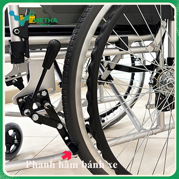 Tay đẩy có phanh hãm: Người hỗ trợ dễ dàng dừng xe an toàn khi cần.