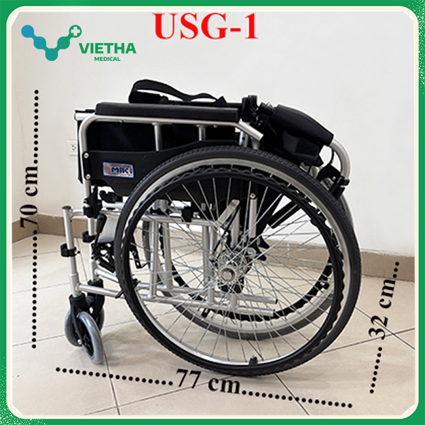 Xe lăn Miki USG-1 là sản phẩm chính hãng từ thương hiệu Miki Nhật Bản, được lắp ráp tại Việt Nam theo tiêu chuẩn quốc tế. Đây là lựa chọn hoàn hảo cho người cao tuổi, người bệnh, người khuyết tật cần phương tiện di chuyển an toàn – bền bỉ – tiện lợi.