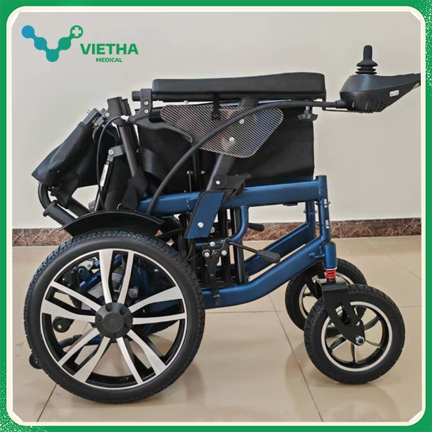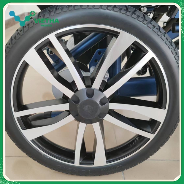 - Vành xe đúc dày, cắt CNC tinh xảo, mang đến độ chắc chắn và độ bền vượt trội so với các dòng xe lăn điện thông thường.