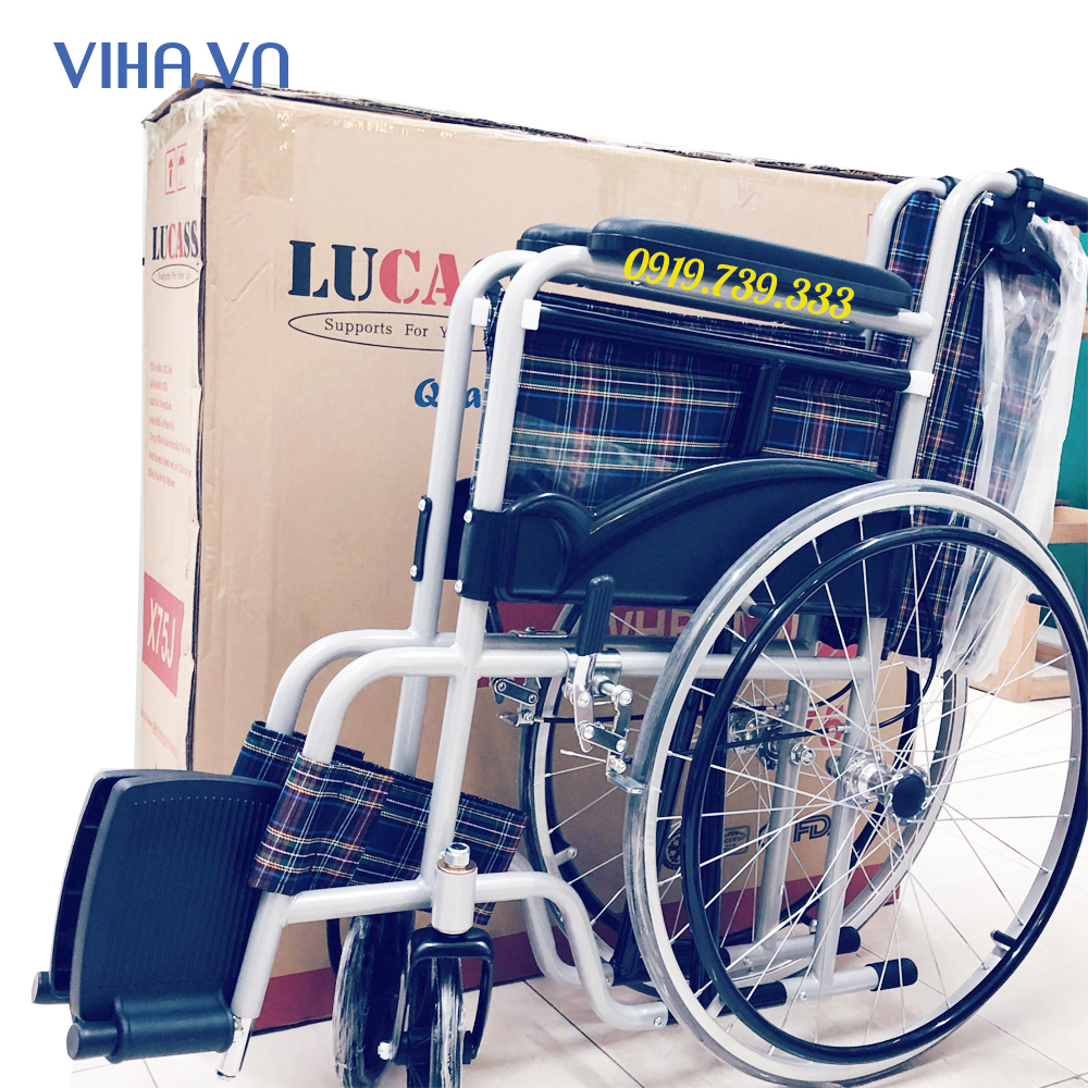 Xe lăn Lucass X75J có phanh, gấp gọn tiện lợi